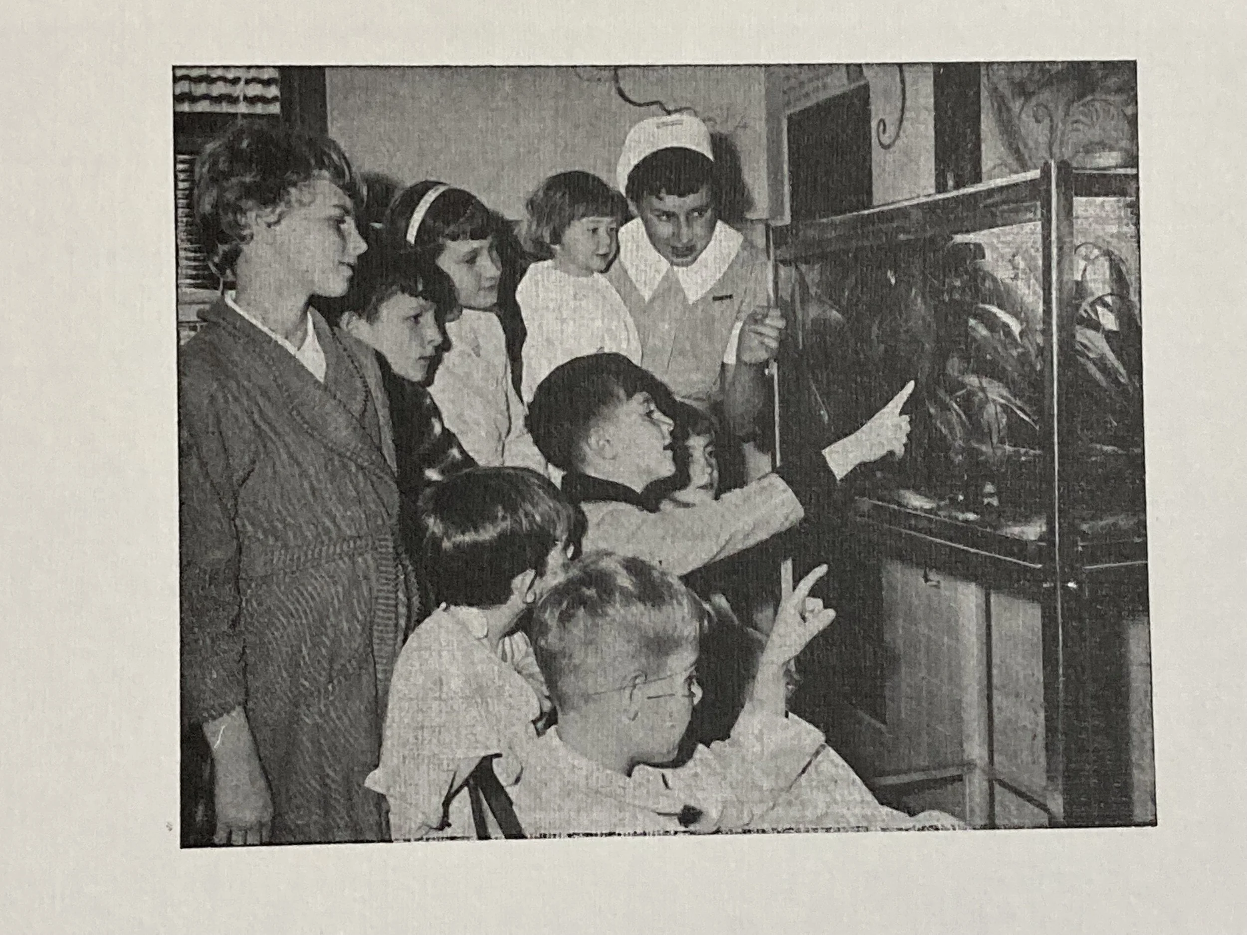 Children and staff admire the fish tank in the children’s ward, 1950s.