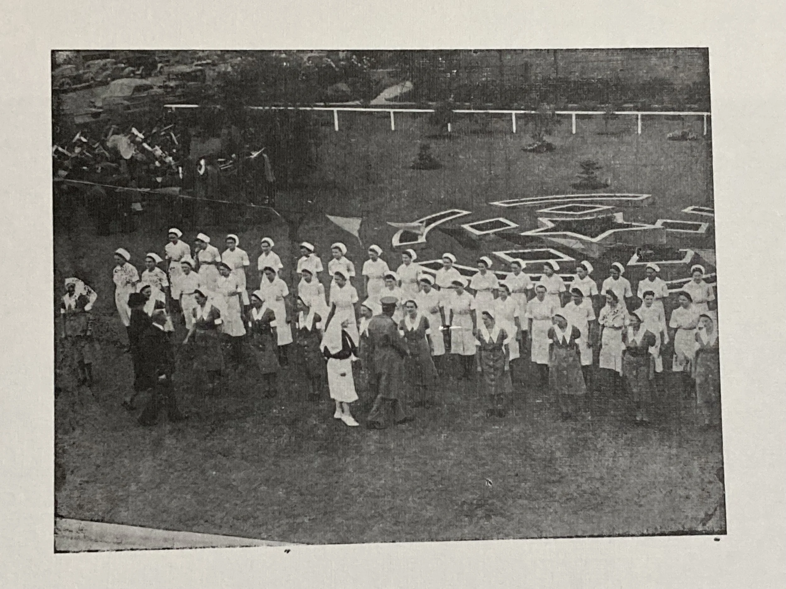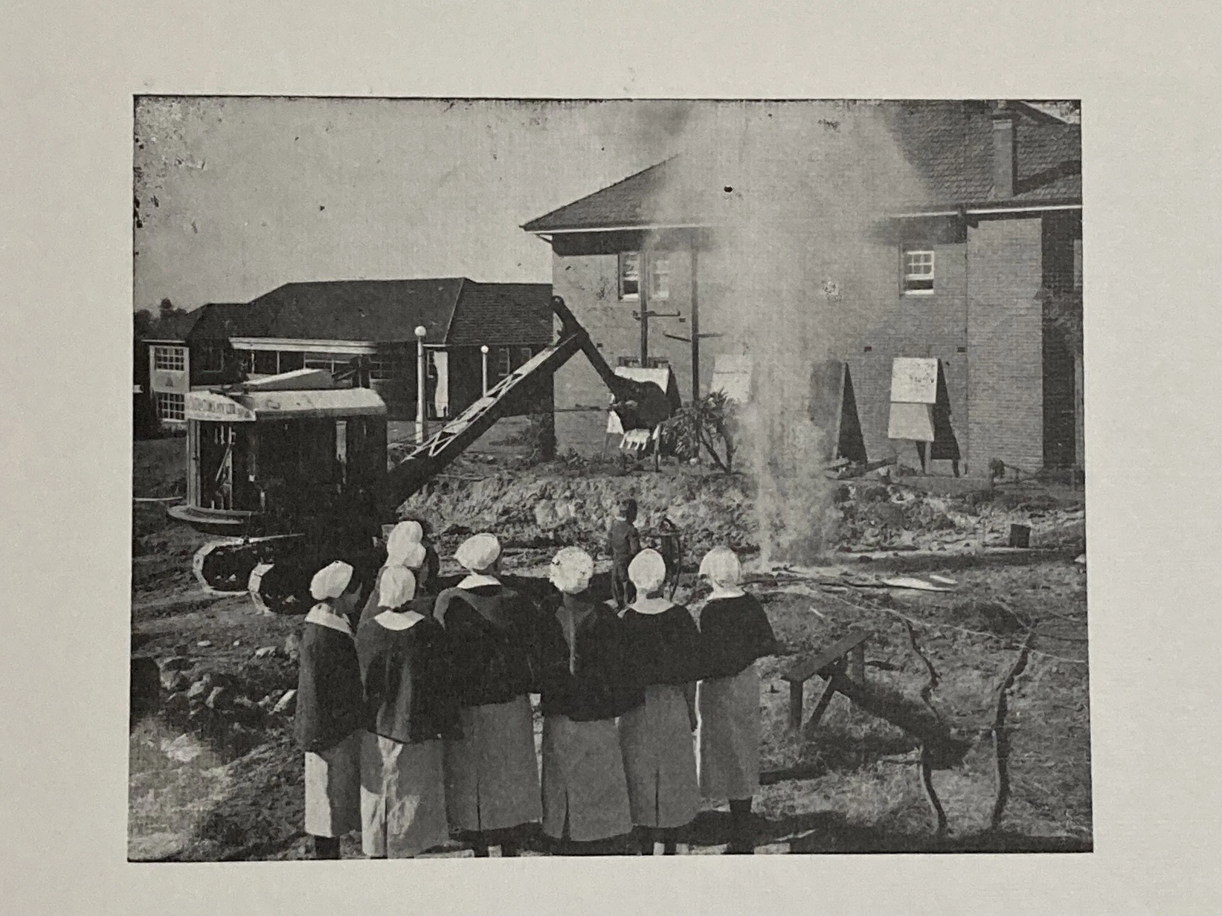 Throughout the 20th century, the hospital continued to expand to accommodate a growing population and an increasingly diverse range of health services. Here a group of nurses watch as the land is cleared for their new residence.